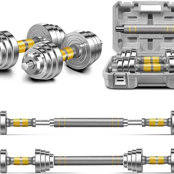 Adjustable Dumbbell Set – 44/66/88 LBS weights set, Dumbbell Barbell 3 in 1, Steel Dumbbells Pair with Connecting Rod for Adults Women Men Fitness Workout, Home Gym Exercise Training Equipment