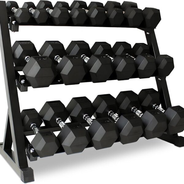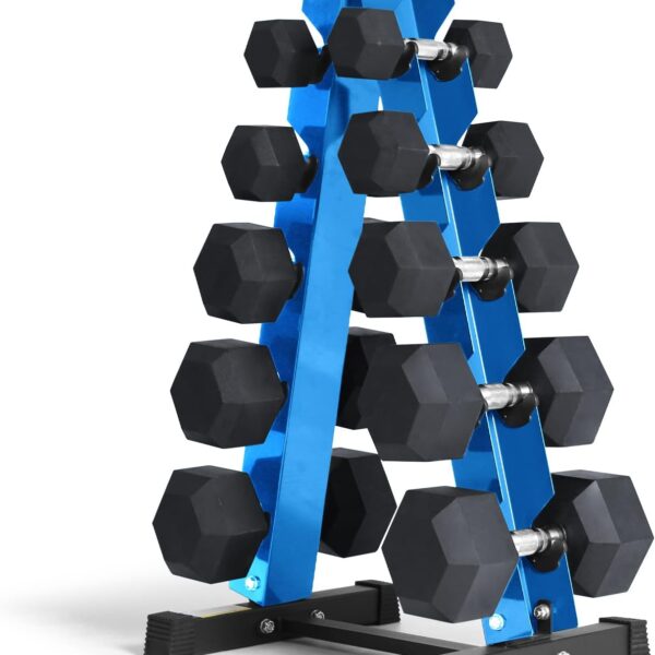 5-50 LBS Rubber Hex Dumbbell Set with Rack, 10 Pair, 550 lbs, Weight Set for Home Gym, Strength Training, Fitness Center Equipment, Black