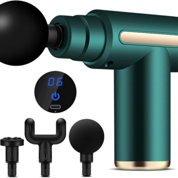 Fascia Gun – Muscle Massage Gun – Handheld Deep Tissue Massager – Percussion Chiropractic Massager with 6 Adjustable Speeds and 4 Heads for Athletes to Relief Pain and Relax (Dark Green)