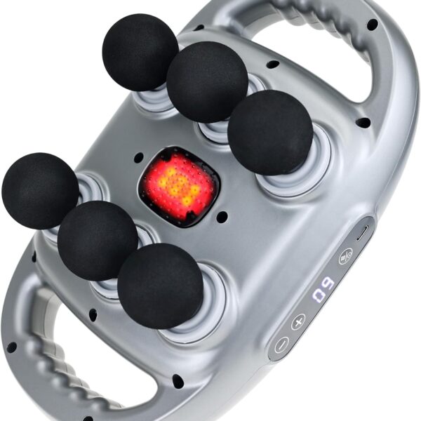 6 Head Massage Gun Deep Tissue with 9 Levels 9 Modes, Muscle Electric Massager Tool for Legs, Arms, Waist, Back, Buttocks – Full Body Pain Relief, Ideal Gifts for Women, Men, Mom, and Dad – Grey