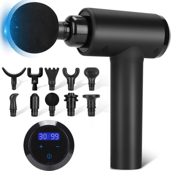 Massage Gun Deep Tissue, Muscle Percussion Back Neck Head Handheld Hammer Massager for Athletes, 30 Speed Level, LED Touch Screen, Long Battery Life with 10 Heads