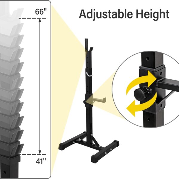Adjustable Squat Rack Stand Barbell Bench Press Stands Rack Push Up Multi Function Weight Lifting Home Gym Portable Dumbbell Racks Stands 40″-66″ 550Lbs Capacity, Black