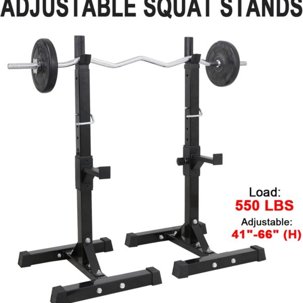 Max Load 550Lbs Pair of Adjustable 40″-66″ Squat Rack Sturdy Steel Squat Barbell Free Bench Press Stands GYM/Home Gym Portable Dumbbell Racks Stands (one pair/two pcs)